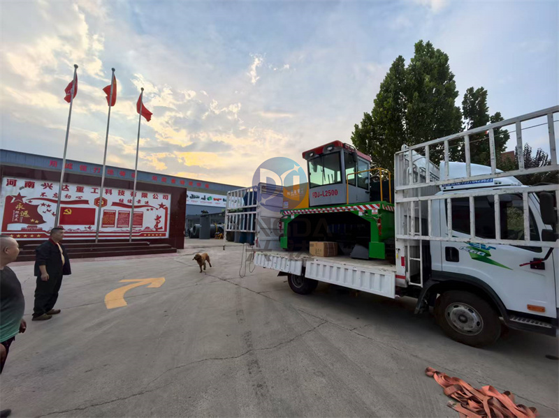 2500型有機肥翻拋發(fā)酵設(shè)備履帶翻拋機正在裝車出發(fā)銅陵:河南興達機械公司是專注于生產(chǎn)有機肥設(shè)備的廠家,種類多,型號全。履帶翻堆機屬于地面堆放發(fā)酵設(shè)備,是目前較節(jié)省土建、人力資源的一種制肥模式。需將物料堆成長形條垛由翻堆機定時對物料實施攪拌、破碎,在好氧條件下進行有機物的分解。