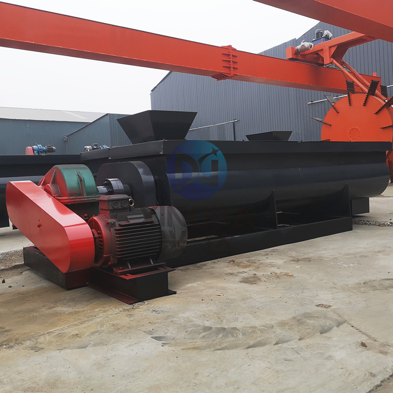 講解有機(jī)肥攪拌設(shè)備雙軸攪拌機(jī)如何試機(jī):雙軸攪拌機(jī)利用兩根呈對(duì)稱狀的螺旋軸的同步旋轉(zhuǎn),雙軸攪拌機(jī)內(nèi)裝有旋轉(zhuǎn)反向的漿葉,漿葉成一定角度將物料沿軸向、徑向循環(huán)翻攪,使物料迅速混合均勻。由電機(jī)通過皮帶傳動(dòng)到減速機(jī)帶動(dòng)軸旋轉(zhuǎn)。軸的速度與槳葉的結(jié)構(gòu)會(huì)使物料重力減弱,隨著重力的缺乏,各物料存在的顆粒大小、比重懸殊的差異在混合過程中被忽略。即使物料有比重、粒徑的差異,在交錯(cuò)布置的攪拌葉片快速劇烈的翻騰拋灑下,也能達(dá)到很好的混合效果。該系列混合機(jī)是我公司研制的新一代混合設(shè)備,該機(jī)混合度高,殘留量少,適合于兩種以上肥料,添加劑預(yù)混料得混合,及配合飼料、濃縮飼料、添加劑預(yù)混飼料等的混合。