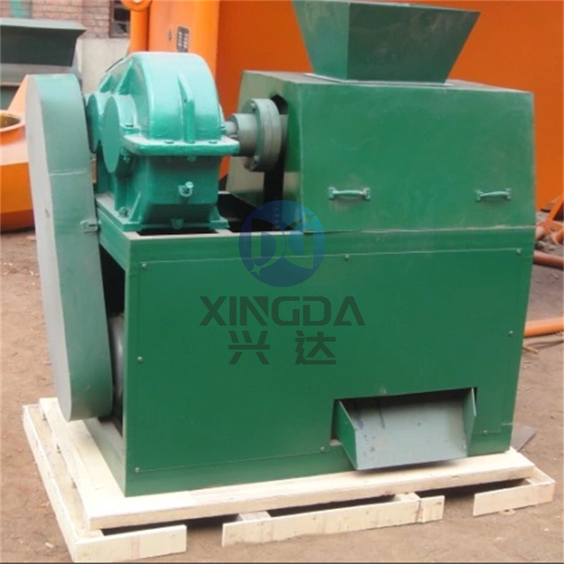 興達(dá)公司對(duì)輥式造粒機(jī)采用物理擠壓原理,將粉劑物料加工為所需形狀顆粒,其工作原理是:由電動(dòng)機(jī)驅(qū)動(dòng)皮帶和 皮帶輪,通過(guò)減速機(jī)傳遞給主動(dòng)軸,并通過(guò)對(duì)開(kāi)式齒輪與被動(dòng)軸同步,相向工作。物料從進(jìn)料斗加入,經(jīng)對(duì)輥擠壓成 型,脫模造球,然后落入破碎室,同時(shí)隨著傳動(dòng)軸驅(qū)動(dòng)的一副鏈條帶動(dòng)兩根狼牙棒的旋轉(zhuǎn),將擠壓成型但相互粘連的 顆粒分離,從下方篩孔篩下成品顆粒和粉料,經(jīng)過(guò)后續(xù)的篩分機(jī)實(shí)現(xiàn)顆粒物料和回料粉劑的分離,利用皮帶輸送 機(jī)使返回料與新料混合,再次進(jìn)行造粒。隨著電動(dòng)機(jī)連續(xù)轉(zhuǎn)動(dòng),物料的不斷進(jìn)入,實(shí)現(xiàn)了批量生產(chǎn)。